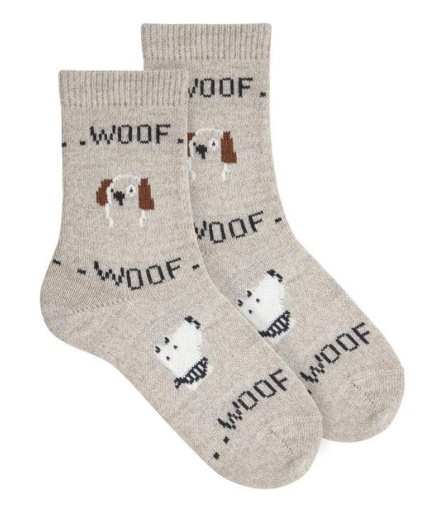 Merino vilnas zeķes ar zīmējumu - bēšas