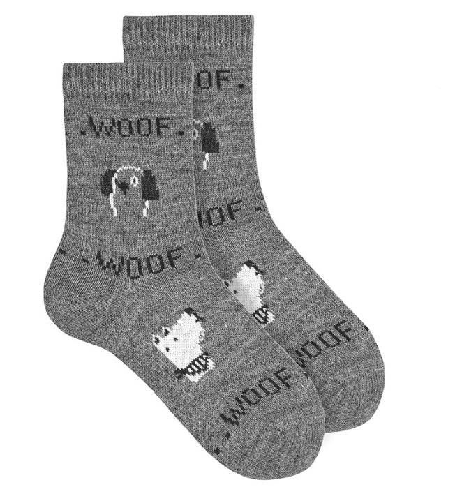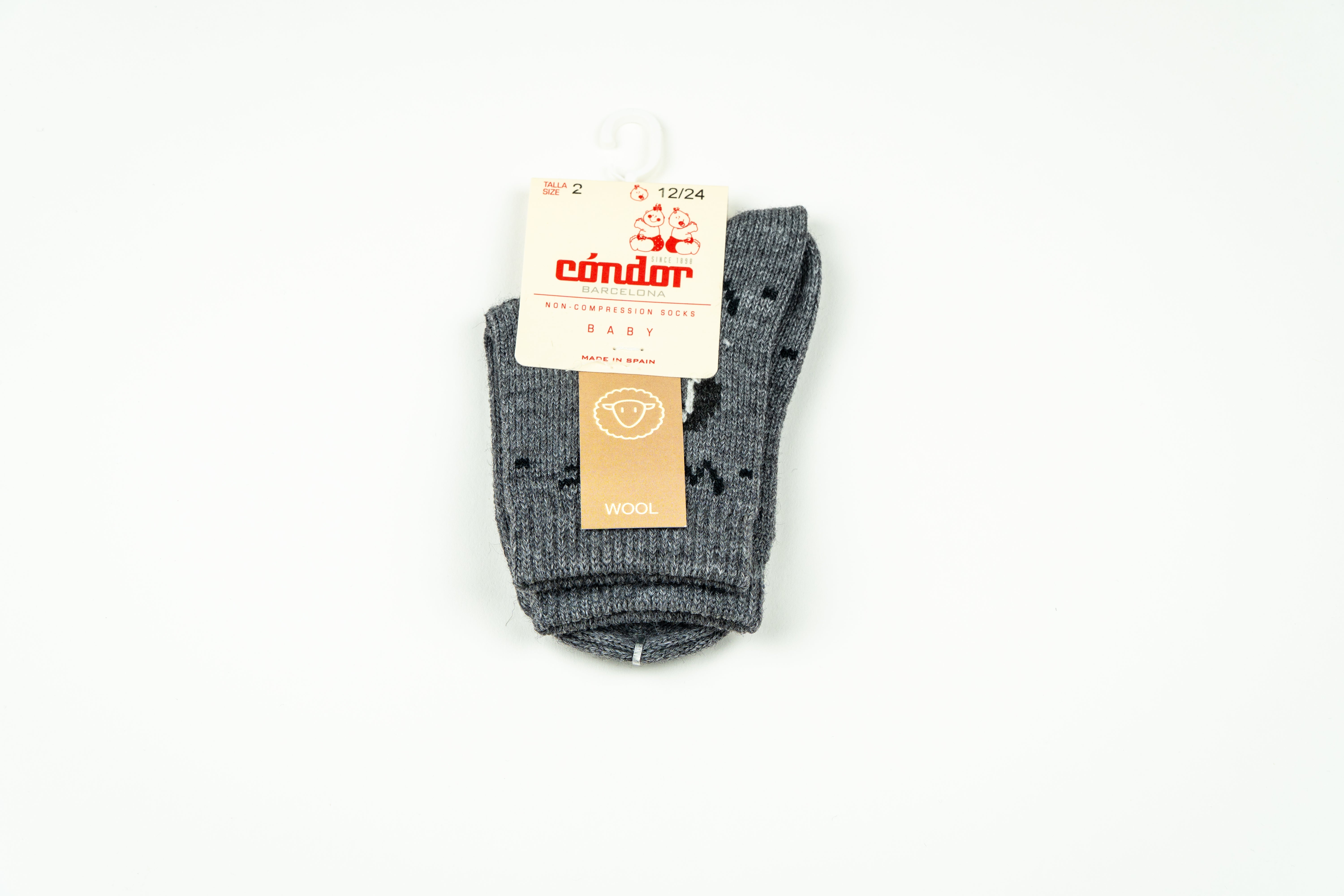 Merino vilnas zeķes ar zīmējumu - pelēkas