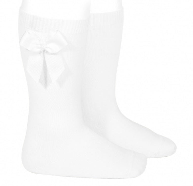 Pusgaras zeķes ar bantīti sānā - balta krāsa