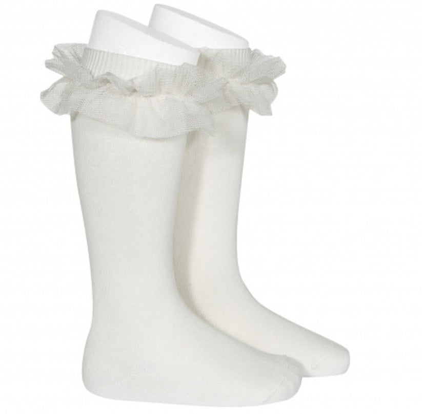 Pusgaras zeķes ar tilla savilkumu - balta krāsa