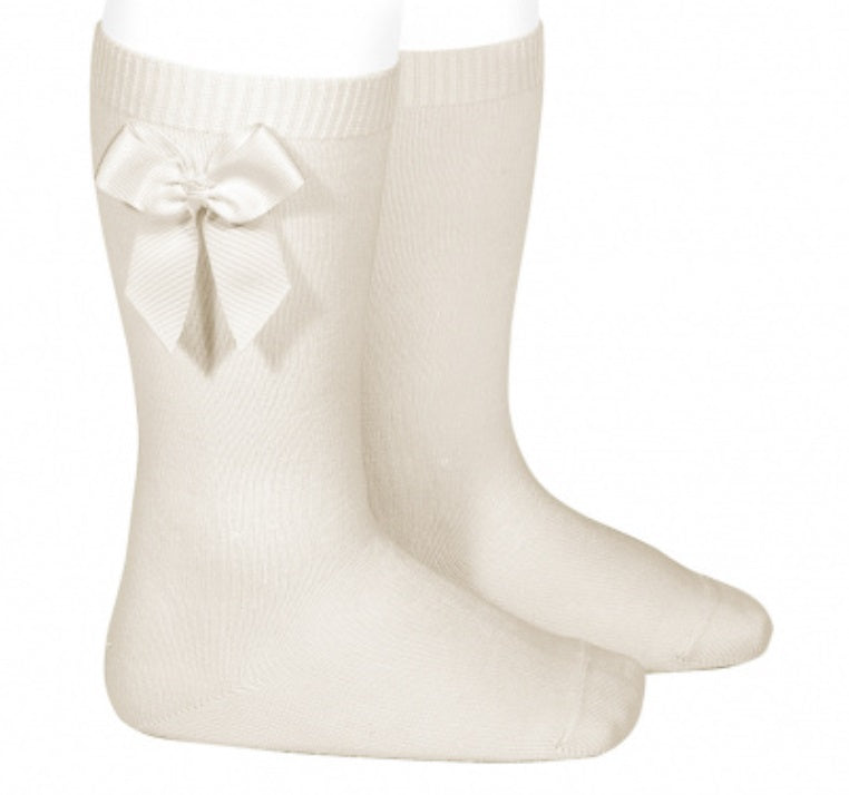 Pusgaras zeķes ar bantīti sānā - bēša krāsa