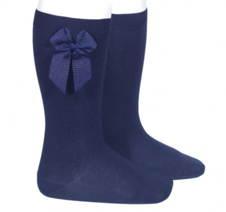 Pusgaras zeķes ar bantīti sānā - zila krāsa