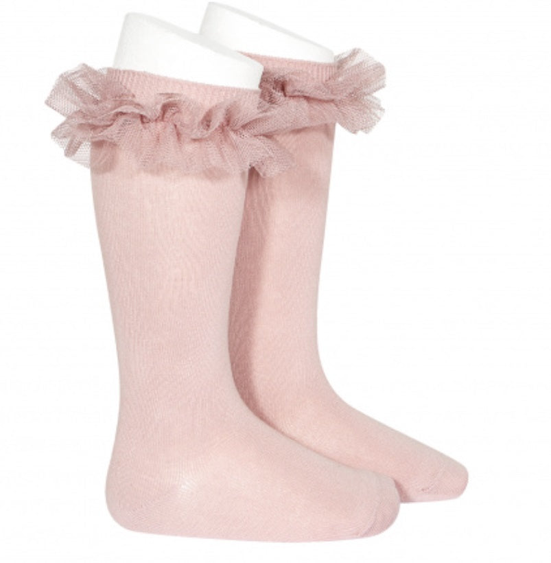 Pusgaras zeķes ar tilla savilkumu - rozā krāsā
