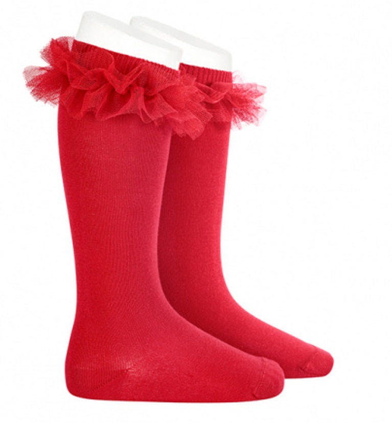 Pusgaras zeķes ar tilla savilkumu - sarkana krāsa