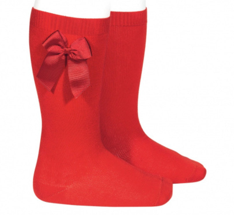 Pusgaras zeķes ar bantīti sānā - sarkana krāsa