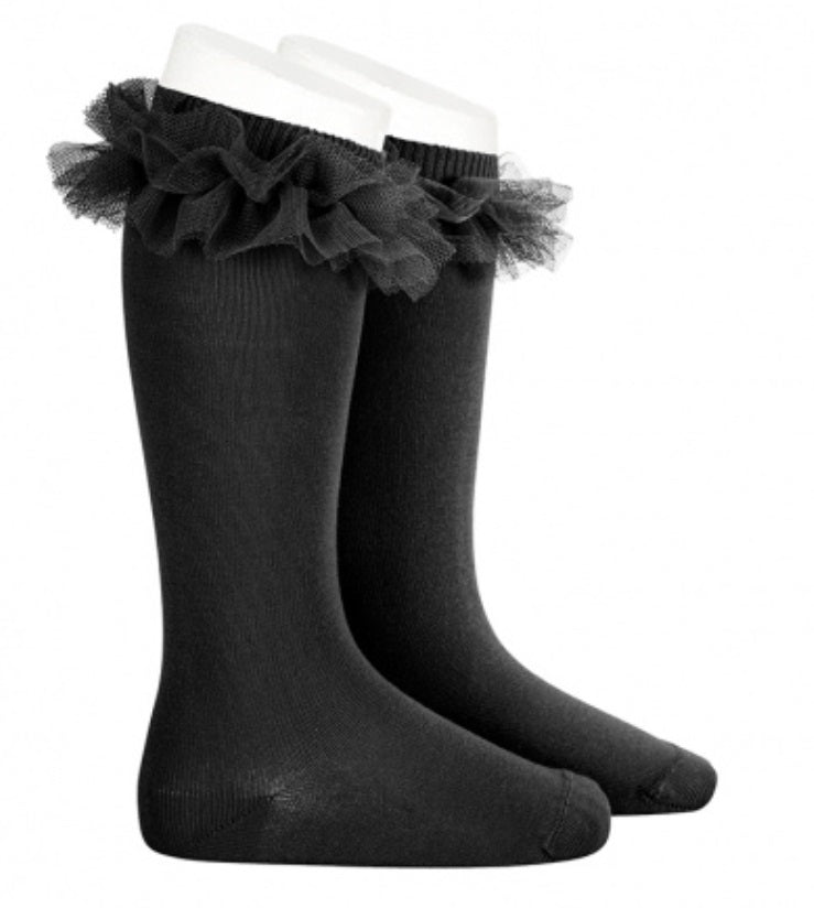 Pusgaras zeķes ar tilla savilkumu - melna krāsa
