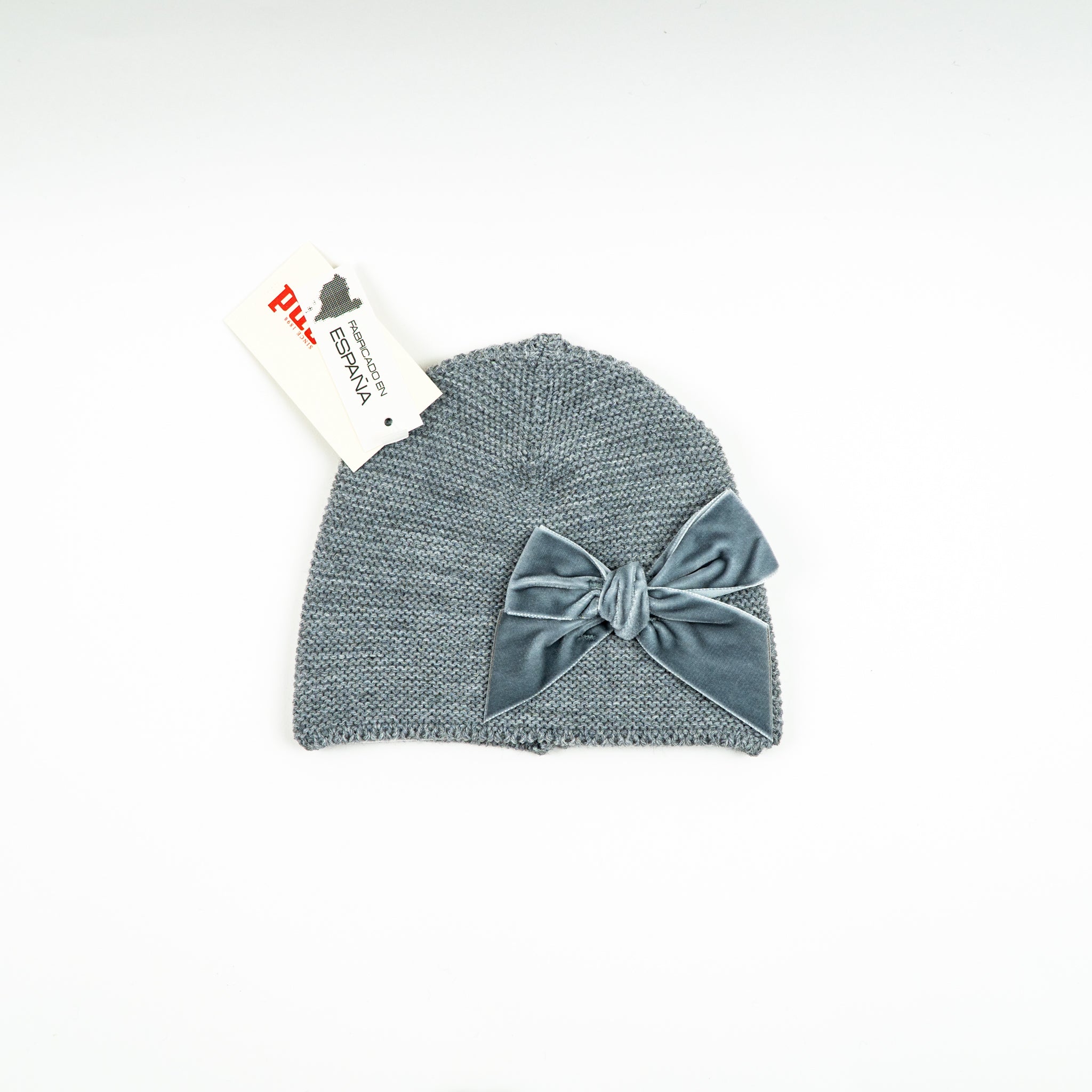 Bērnu cepure - pelēka krāsa - ar samta bantīti
