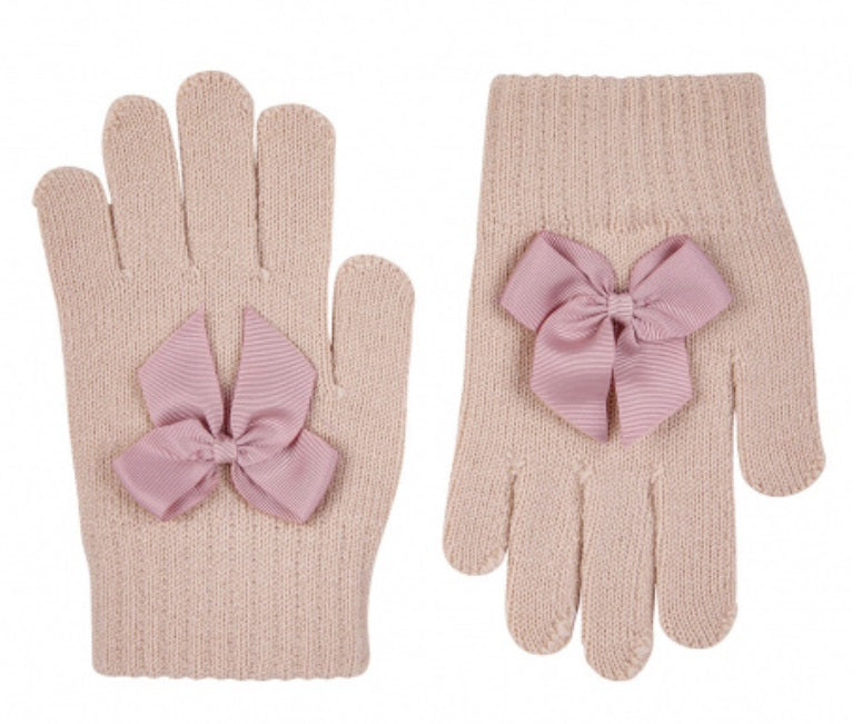Bērnu cimdi - gaiši rozā krāsa - ar samta bantīti