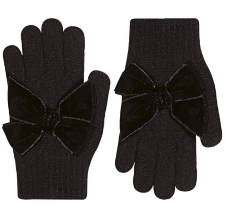 Bērnu cimdi - melna krāsa - ar samta bantīti
