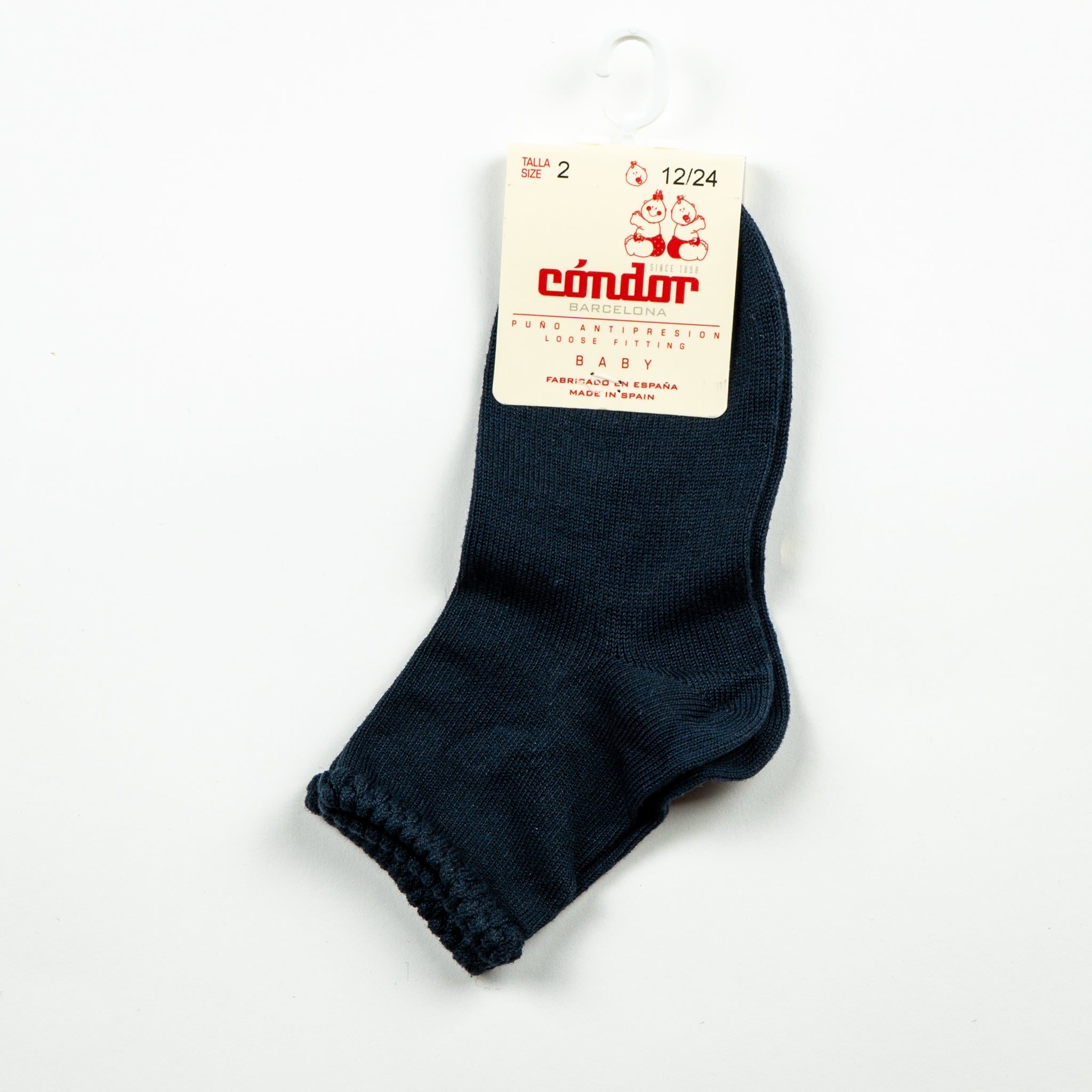 Kvalitatīvas kokvilnas bērnu zeķes tumši zilā krāsā ar rievotu augšdaļu. Zeķes pieejamas dažādās krāsās - baltā, sarkanā, zilā, melnā.