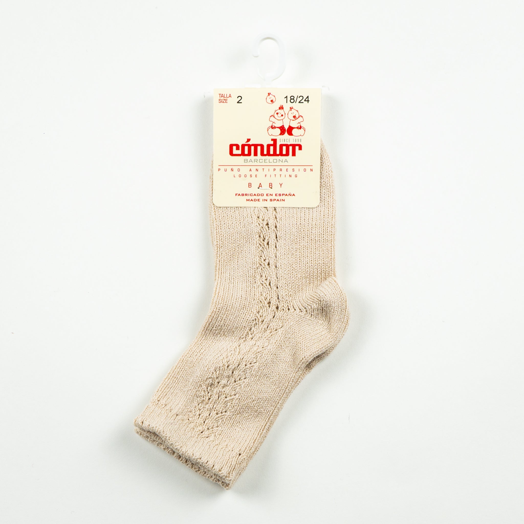 Īsās kokvilnas zeķes - bēša (lina) krāsa ar rakstu