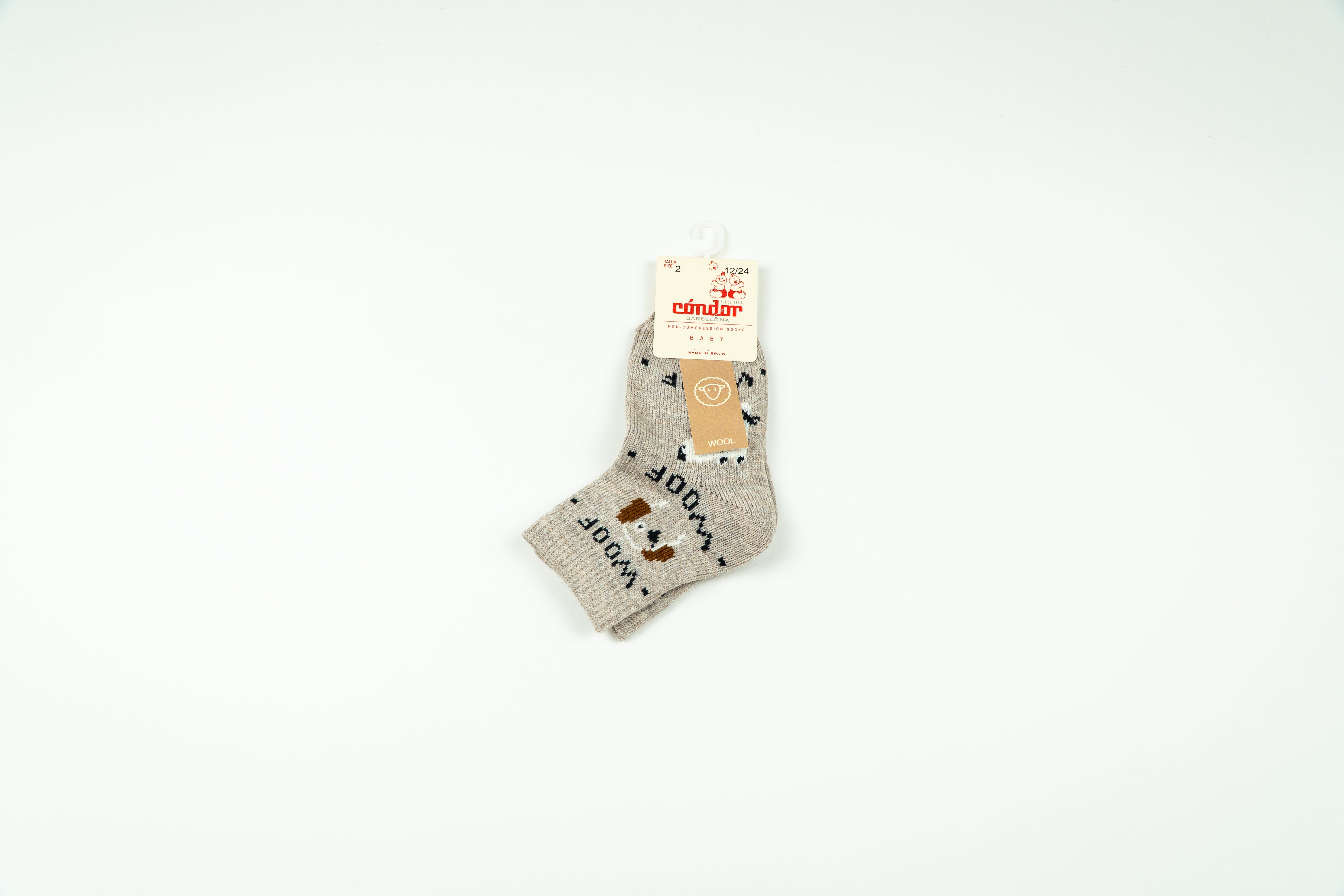 Merino vilnas zeķes ar zīmējumu - bēšas
