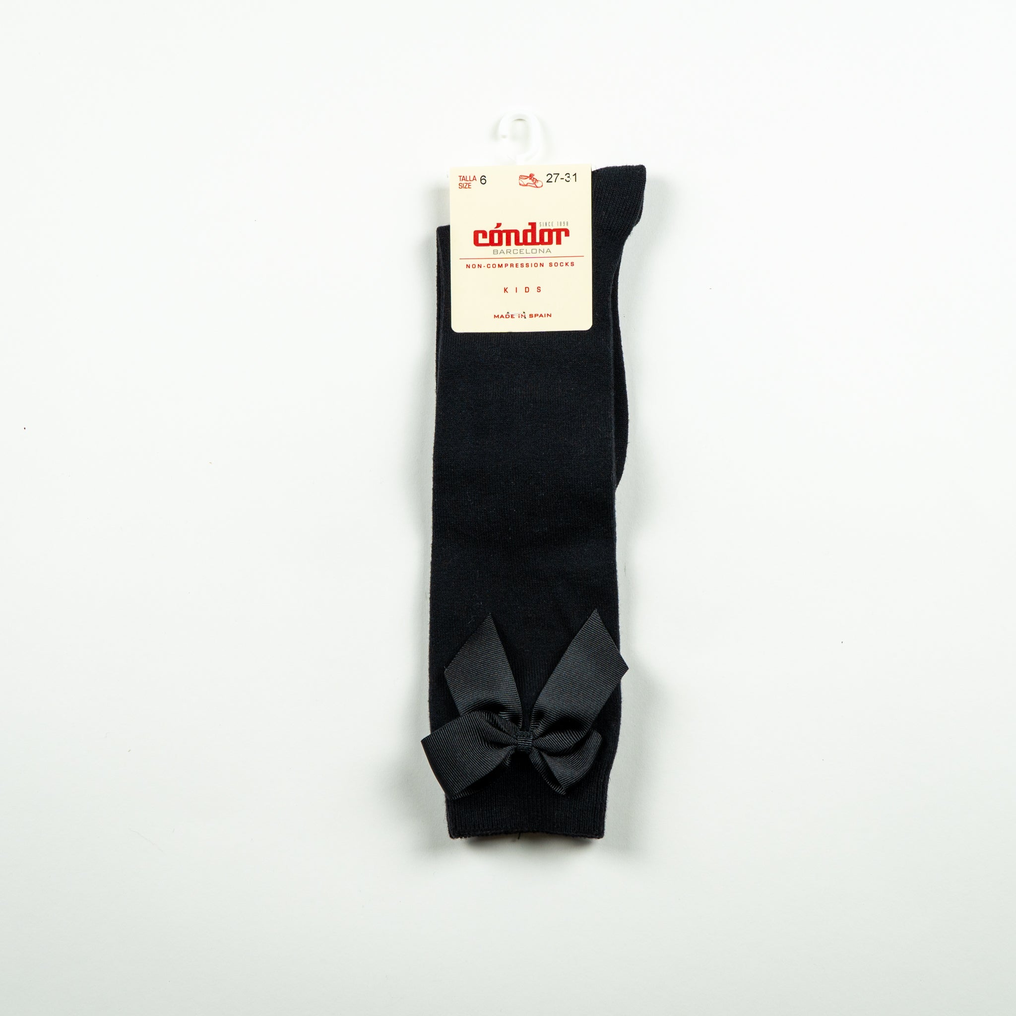 Pusgarās bērnu zeķes ar bantīti sānā melnā krāsā.