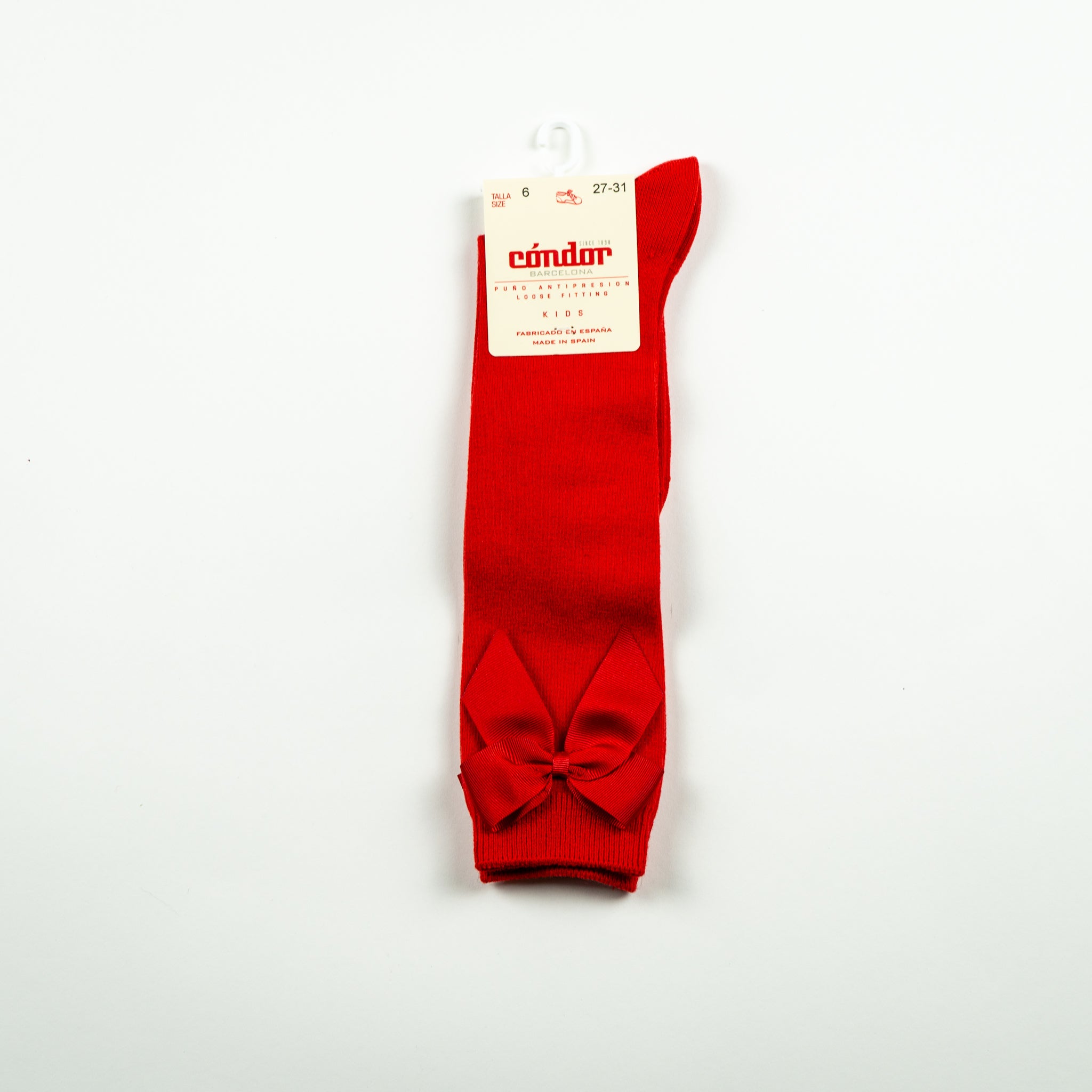 Pusgarās bērnu zeķes ar bantīti sānā sarkanā krāsā.