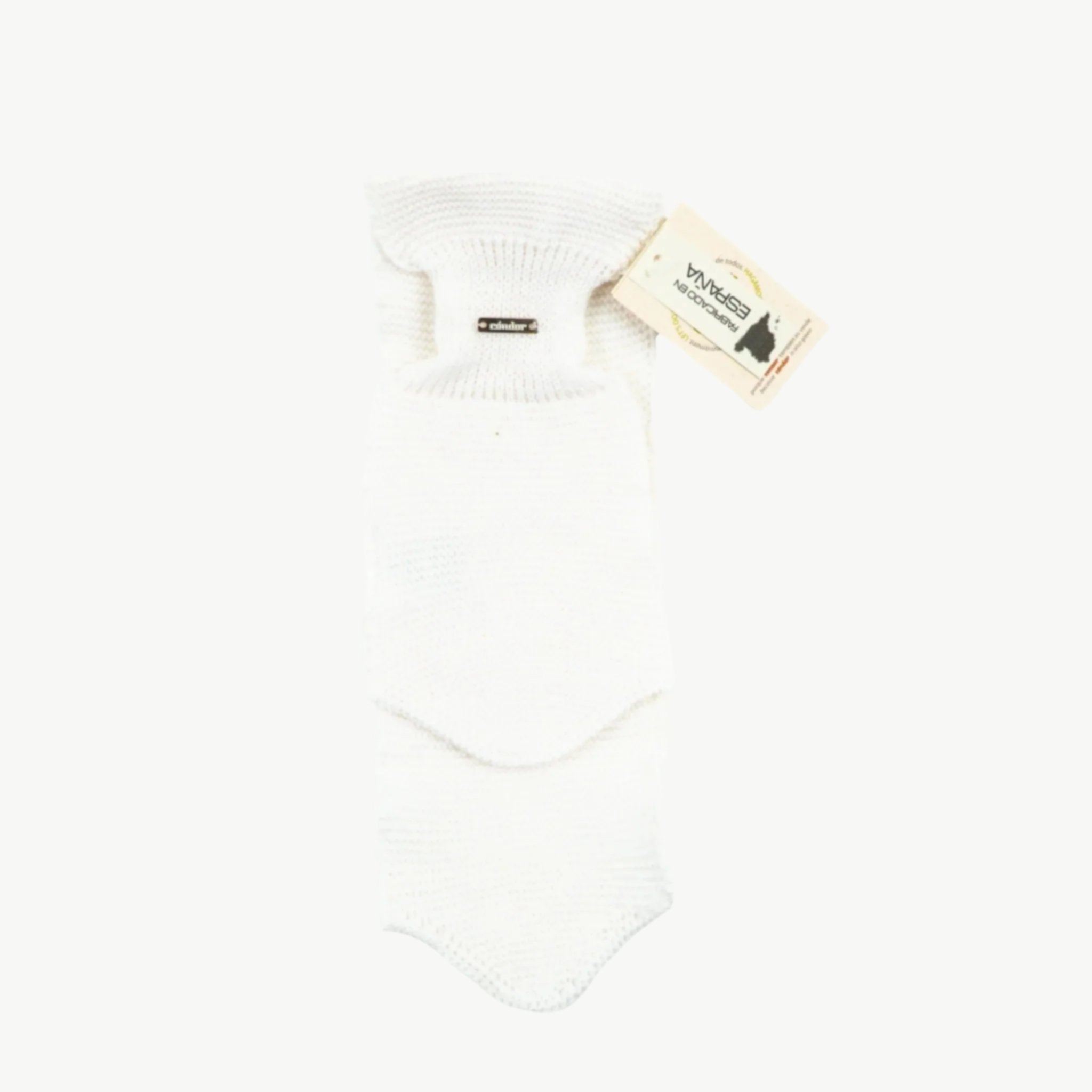 Bērnu šalle baltā krāsā. Priekšā sakrustota.