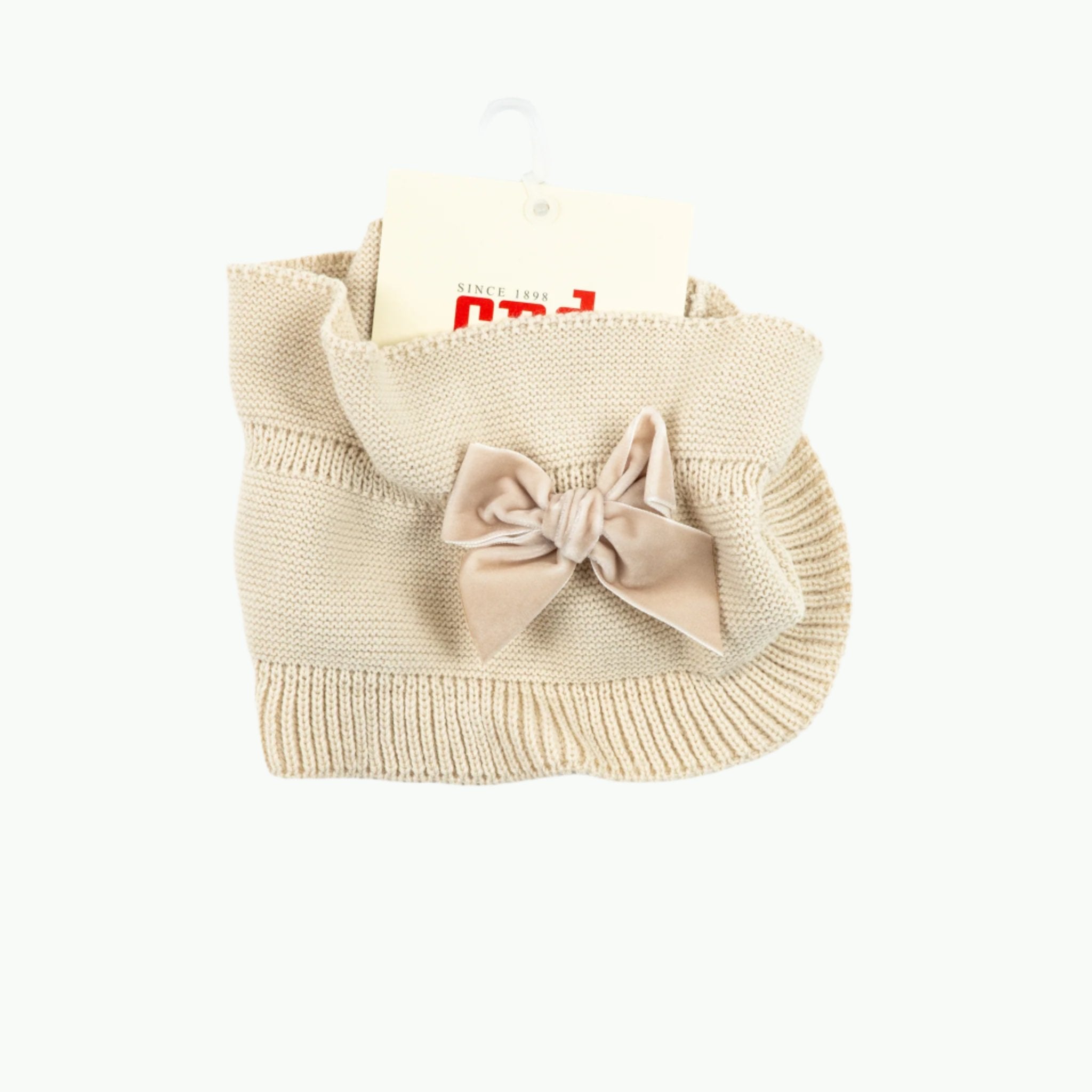 Pievienojiet mazajam elegantu un siltu akcentu ar šo burvīgo bērnu šalli bēšā krāsā, kas dekorēta ar smalku samta bantīti. Ideāli piemērota ikdienas pastaigām un svētku notikumiem, šalle ne tikai pasargās no vēsā laika, bet arī piešķirs stilīgu akcentu jebkuram apģērbam.