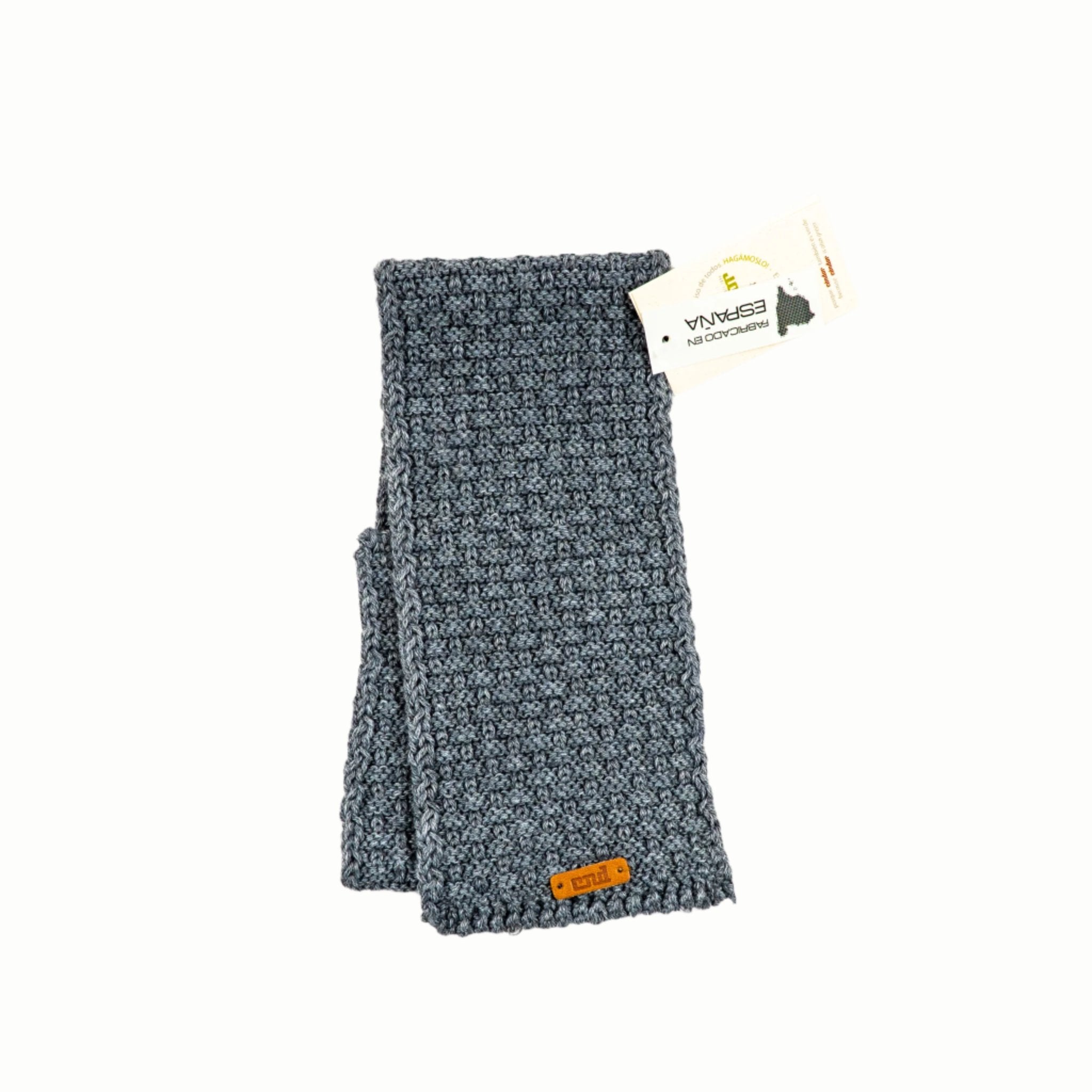 Bērnu šalle pelēkā krāsā. Priekšā sakrustota.