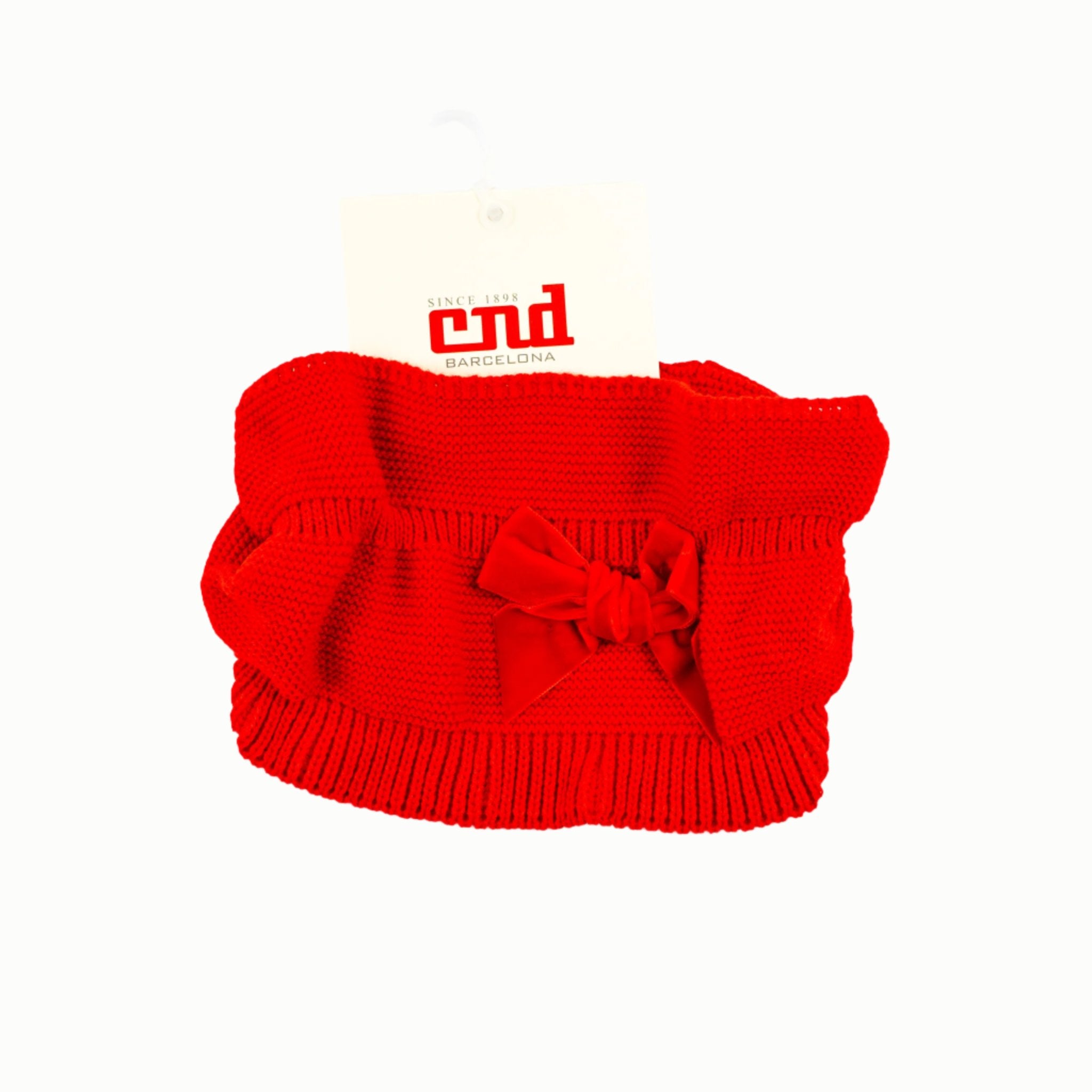 Eleganta un stilīga bērnu šalle ar samta bantīti sarkanā krāsā.