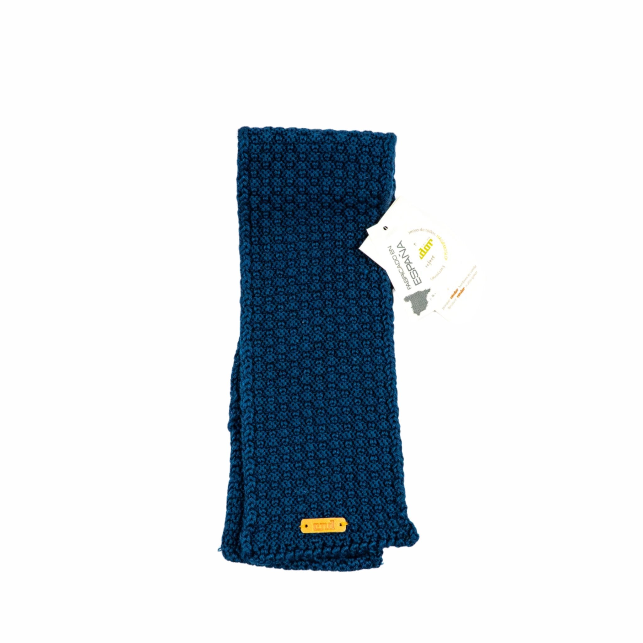 Bērnu šalle zilā krāsā. Priekšā sakrustota.